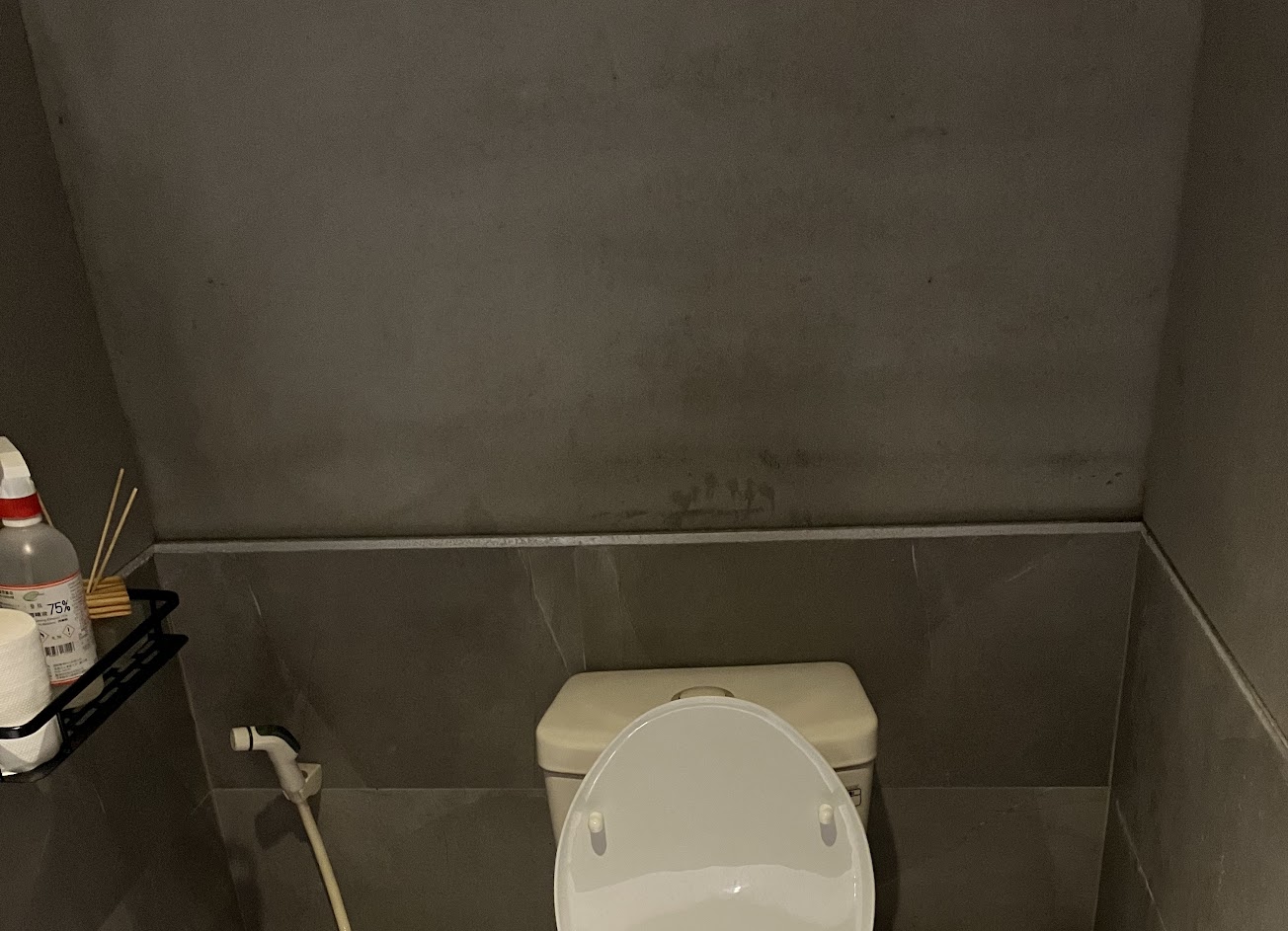 還不錯的洗手間,裝潢算新但牆上有點污垢,有洗手乳、擦手紙、酒精、衛生紙,門鎖有點卡卡的不好關。
