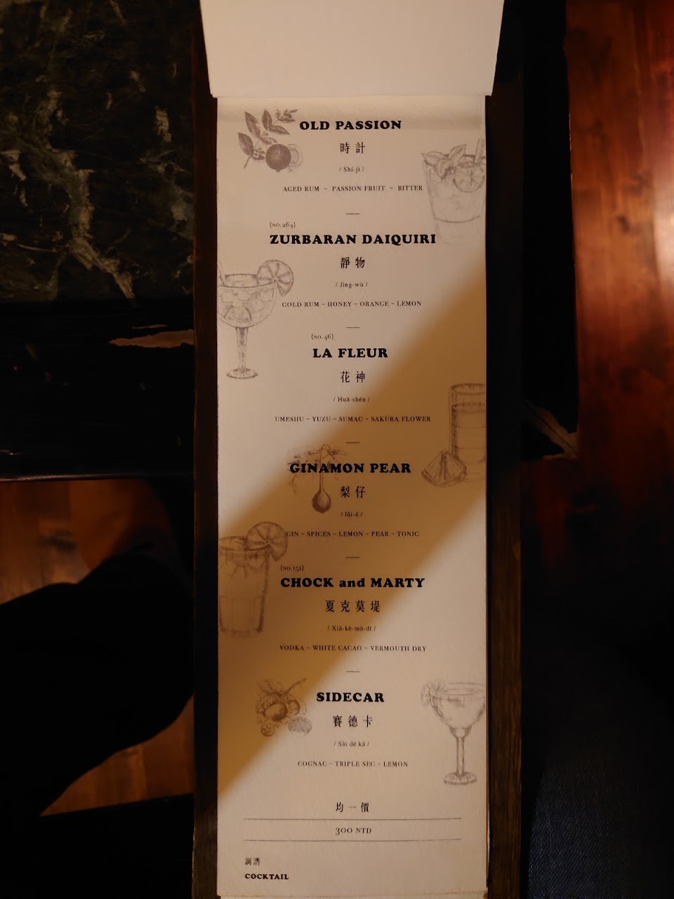 位於橋下的老宅酒吧,隔壁就是福德爺廟,不遠處是醫院,不怕喝多。調酒一律300,也有多款比利時啤酒及無酒精飲料,我們點的是順風與探險者,前者有peach beer、maple syrup、ginger、egg white,鼻尖有桃子的香氣,入口則是蘋果派的肉桂香,甜但又不失酒感;探險者有咖啡與紅茶,層次豐富,酒感中上。是間會想再回訪的店!