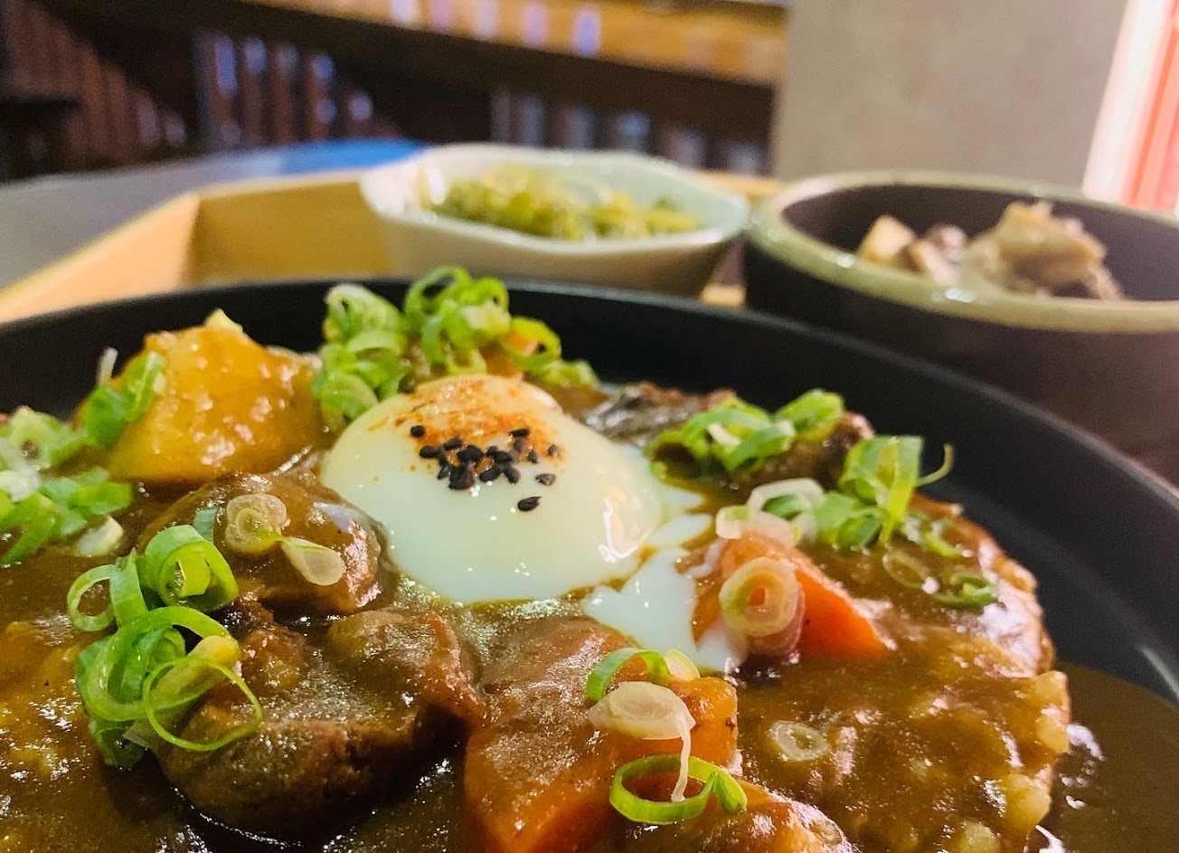 菜單上註明咖喱飯微辣,實際吃起來沒有辣的味道,口味偏鹹 熱熱的咖喱醬配溏心蛋很順口,小菜的柚香蘿蔔很好吃,口感很清脆~淡淡的柚子香氣 加套餐很划算~好吃買了一罐回家當配菜~大盛烏龍的牛肉滿到整碗,湯頭非常清淡,烏龍很Q彈 吃一碗很飽 不會很膩