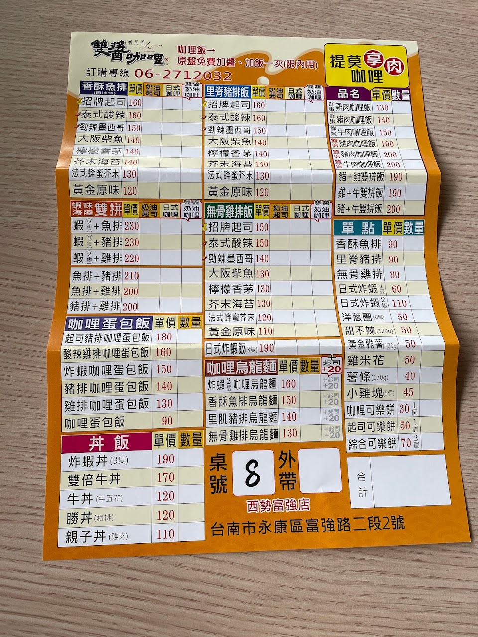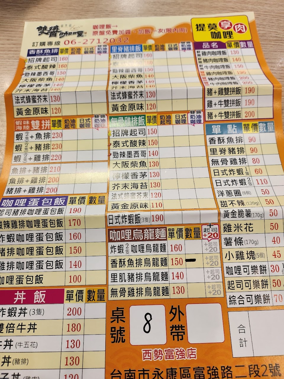 2024最新在地推薦餐廳的菜單_雙醬咖哩西勢富強店的菜單、圖片