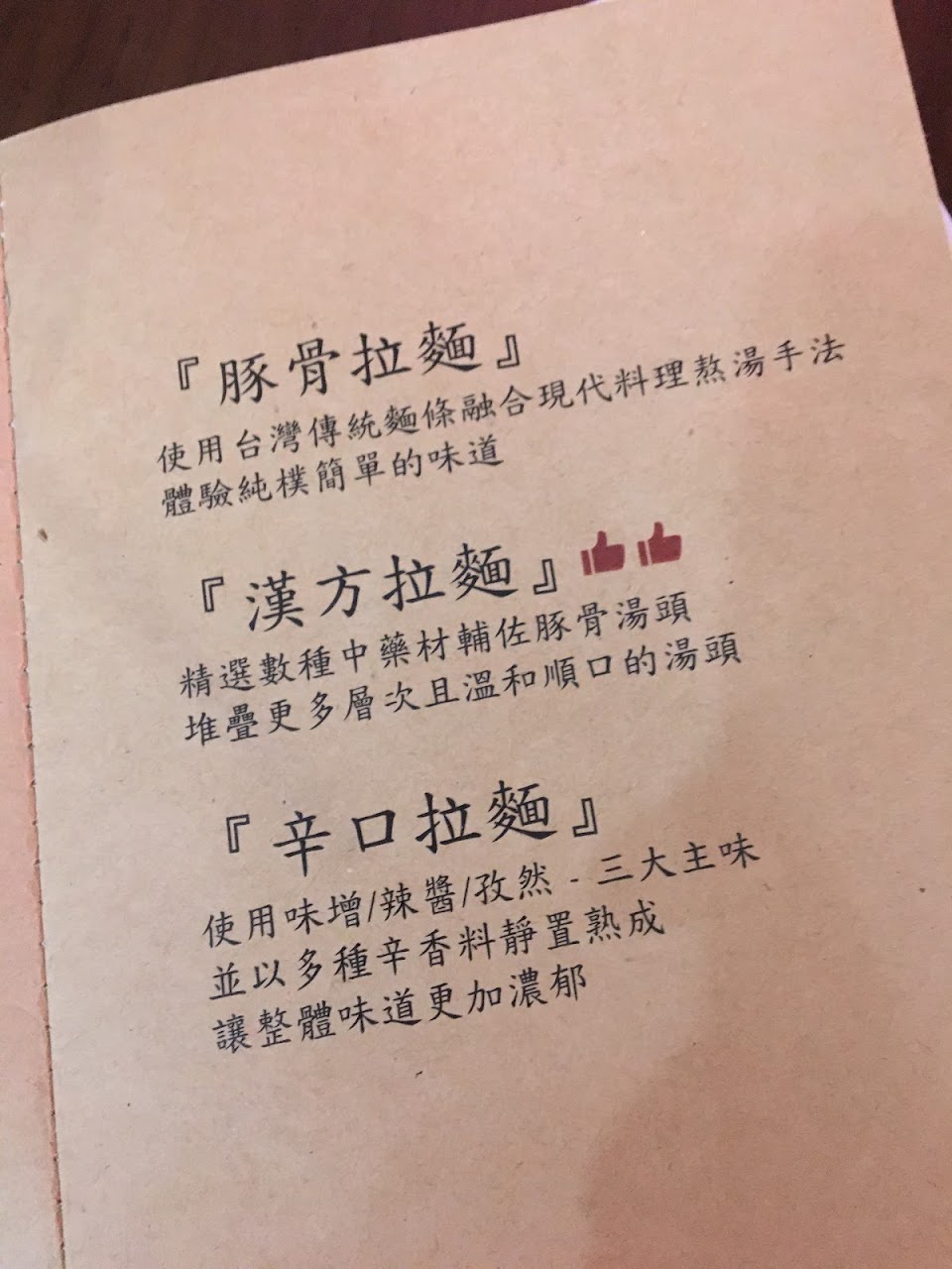 個人喜歡硬麵所以覺得麵有點軟,不知道下次點餐前能否要求硬度,下次想試看看漢方口味。