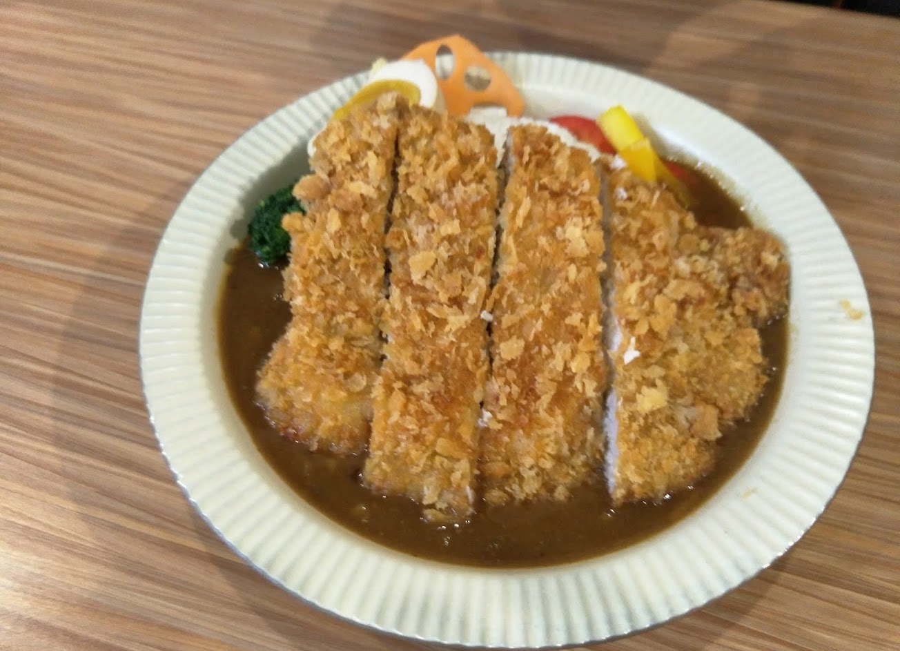 CP值很高的炸物咖喱店~同行友人點了蔬菜咖喱外帶,評價好吃可回購~我則是單點了炸唐揚,炸豬排,南瓜可樂餅~配著自己準備的蛋包飯~是滿足的一餐~