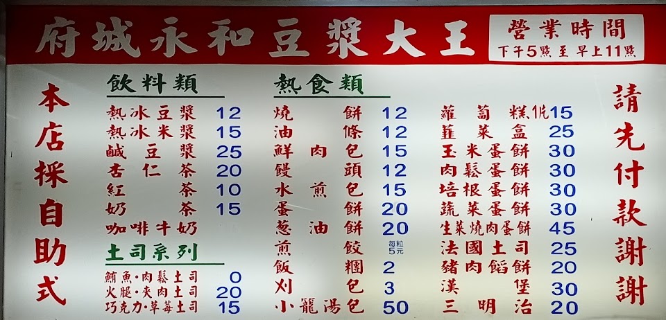 2024最新在地推薦餐廳的菜單_府城豆漿大王 崑山店的菜單、圖片