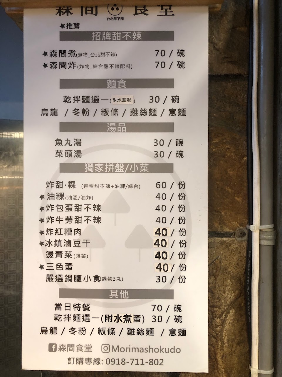 森間炸$70: 不同口感的炸甜不辣,超好吃,因不吃米血糕,有請板娘換掉,每種炸甜不辣都扎實又QQ的,但分別又有不一樣的口感,很特別,調味的醬料甜甜鹹鹹的,加一點辣椒籽辣油也很讚,另外吃完還可以請老闆加湯!