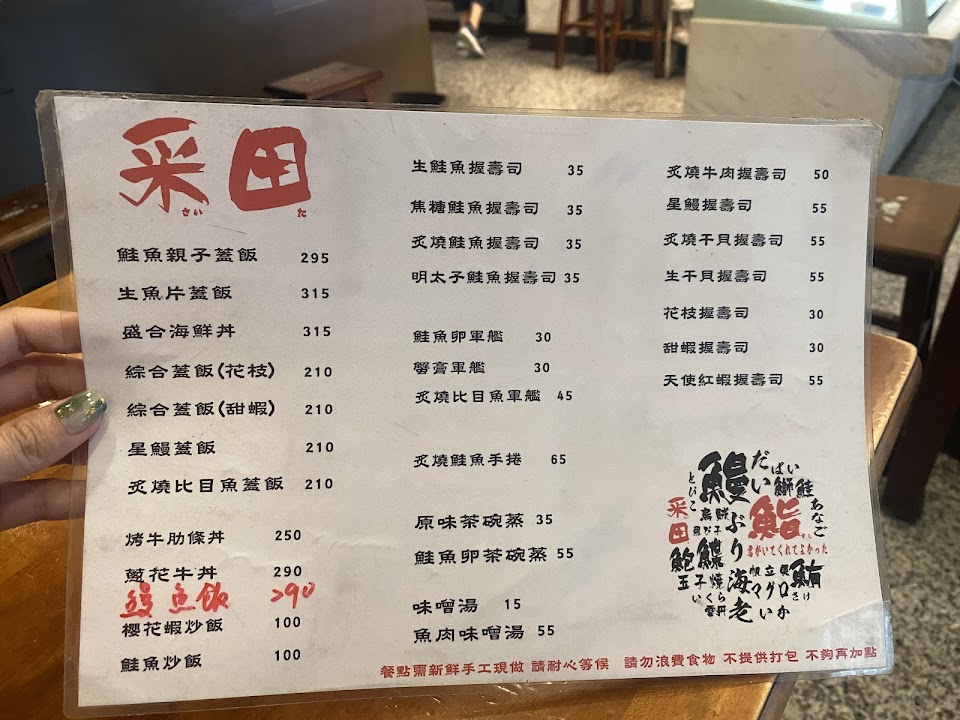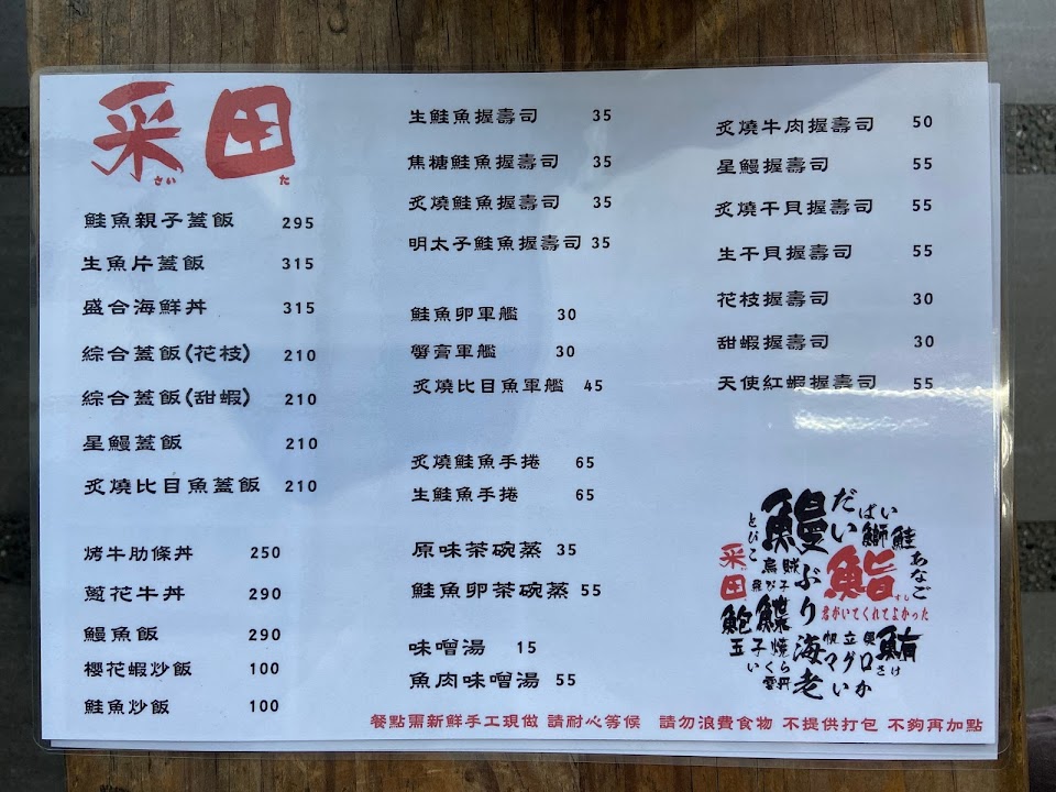 2024最新在地推薦餐廳的菜單_采田壽司的菜單、圖片