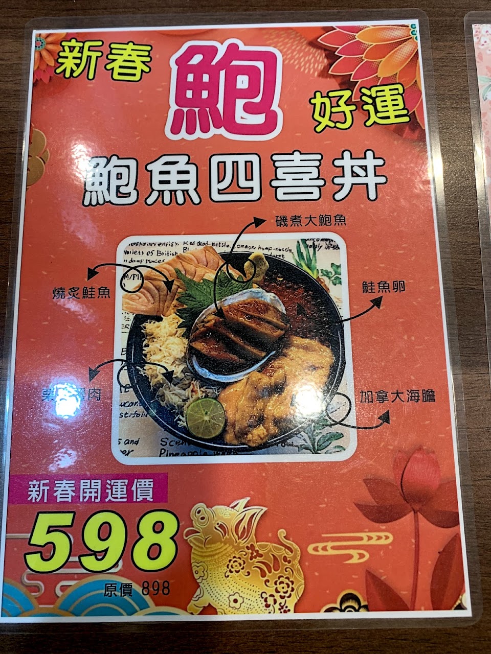 海鮮食材新鮮,口味不錯,但丼飯感覺偏小,CP值不足,對面有停車場,只是計費方式很奇怪,1人低消200元,我們4人已經點1100了,但我忘記啥原因,要多點2道菜,才算800元低消,,,