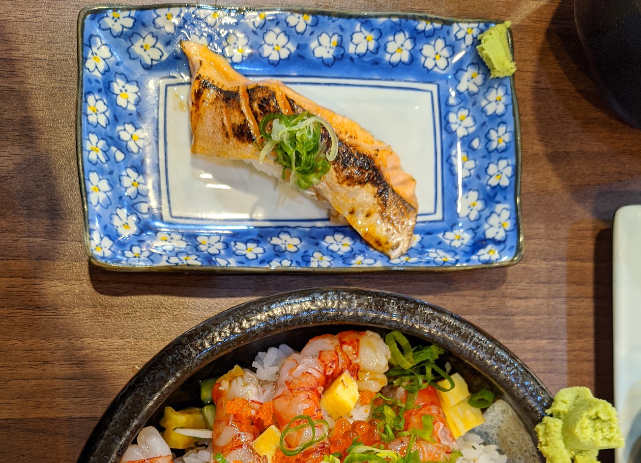 出差路過點了炙燒鮭魚蔥花丼,醋飯是好吃的(飯是溫的),整體表現水準之上。