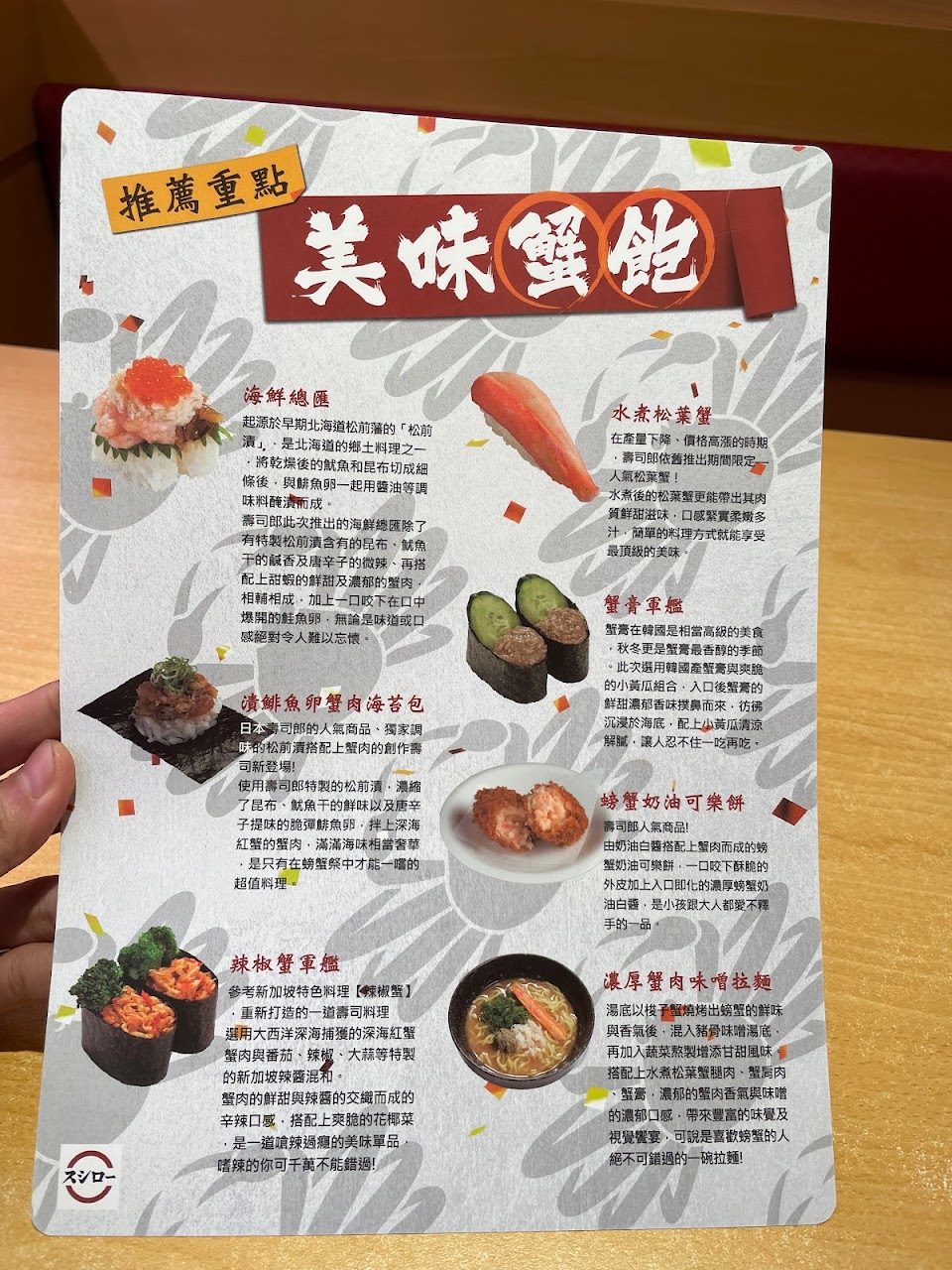 很開心能帶家人一起品嚐壽司郎,我的體認是:停車環境很方便友善,壽司多樣選擇,有旋轉也有專點,豐富度飽滿,新鮮度也極高,它的用餐設計很人性化,只有一個小缺點,價格偏高,但值得喔~