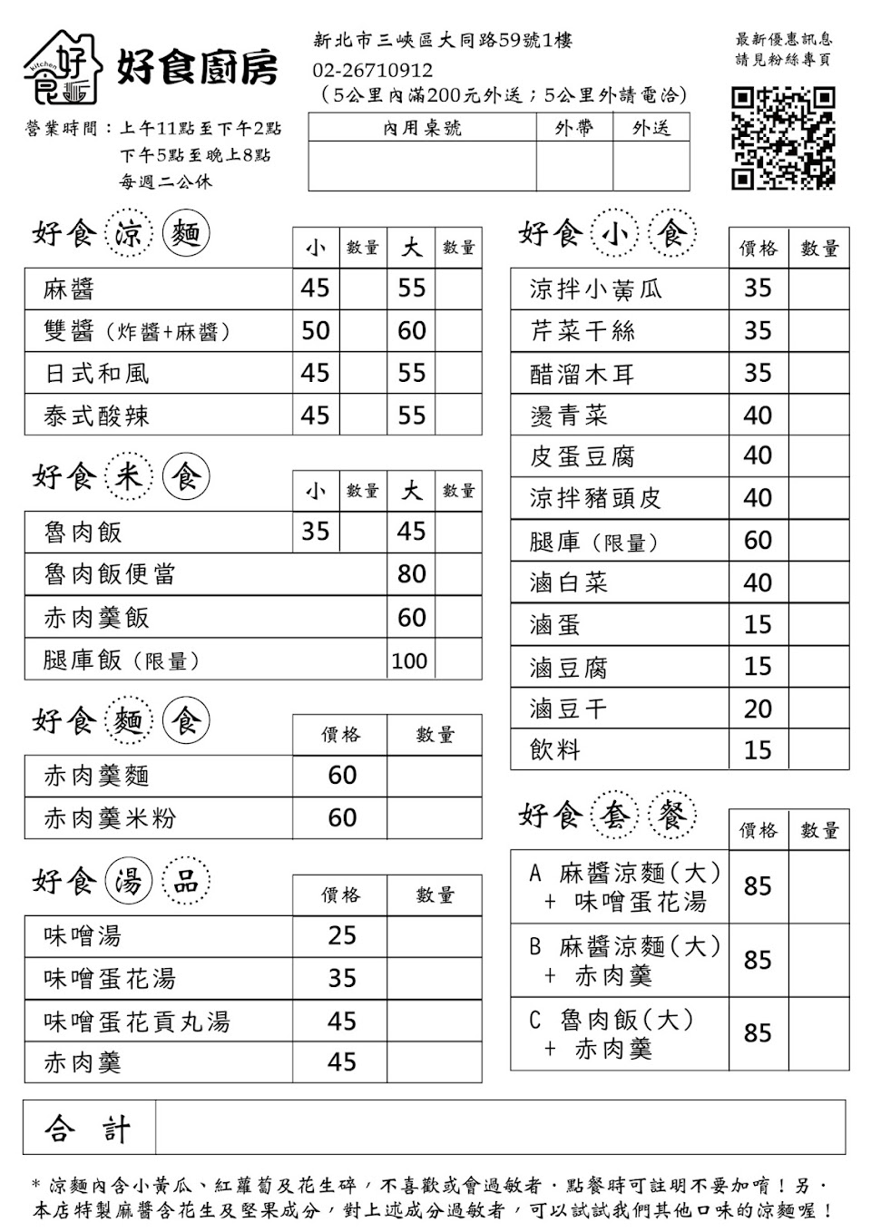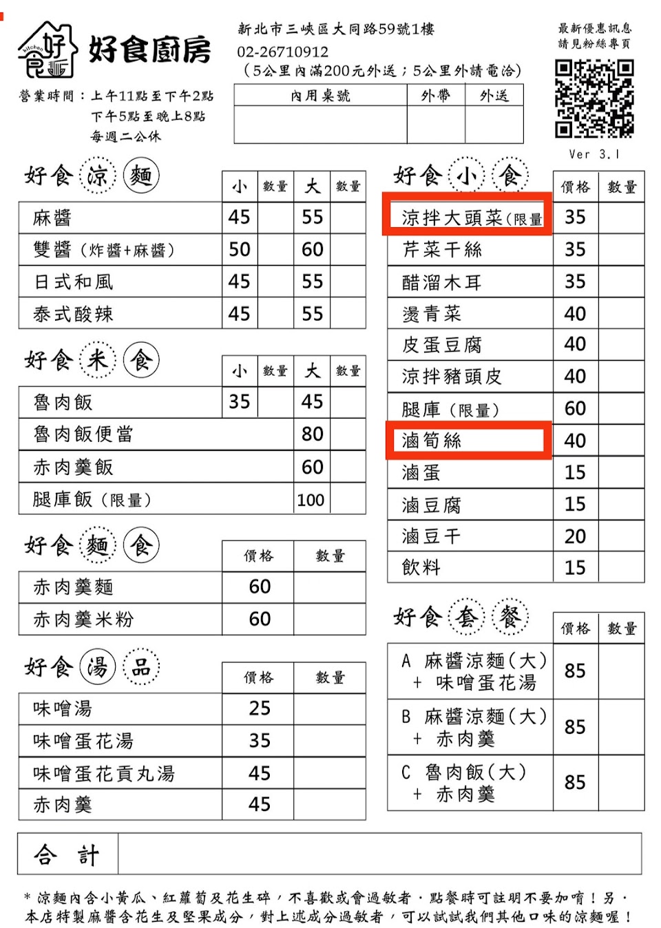 2024最新在地推薦餐廳的菜單_好食廚房/三峽美食/赤肉羹/腿庫/滷肉飯的菜單、圖片