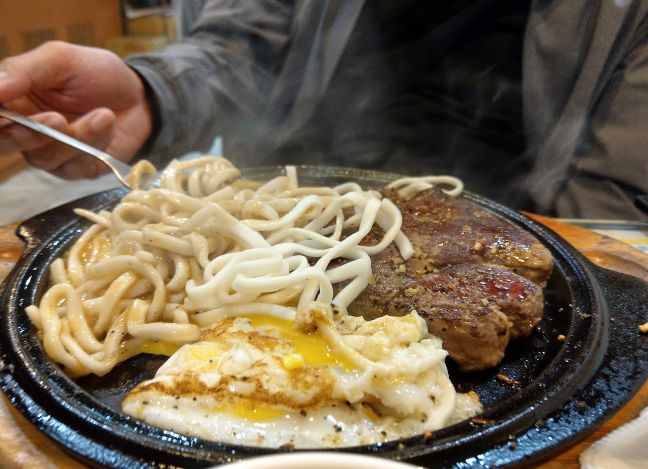 很意外,巷子口的牛排小店竟然這麼好吃,肉質軟嫩,黑胡椒醬汁調得很美味,有點辣又不會太辣,鐵板麵份量也夠多,可惜附餐只有玉米濃湯(玉米粒不多),和無限供應的紅茶(偏甜),整體而言,算是平價美味,不錯。