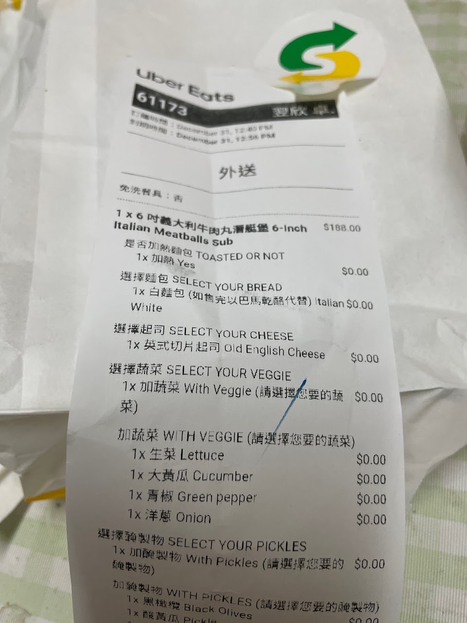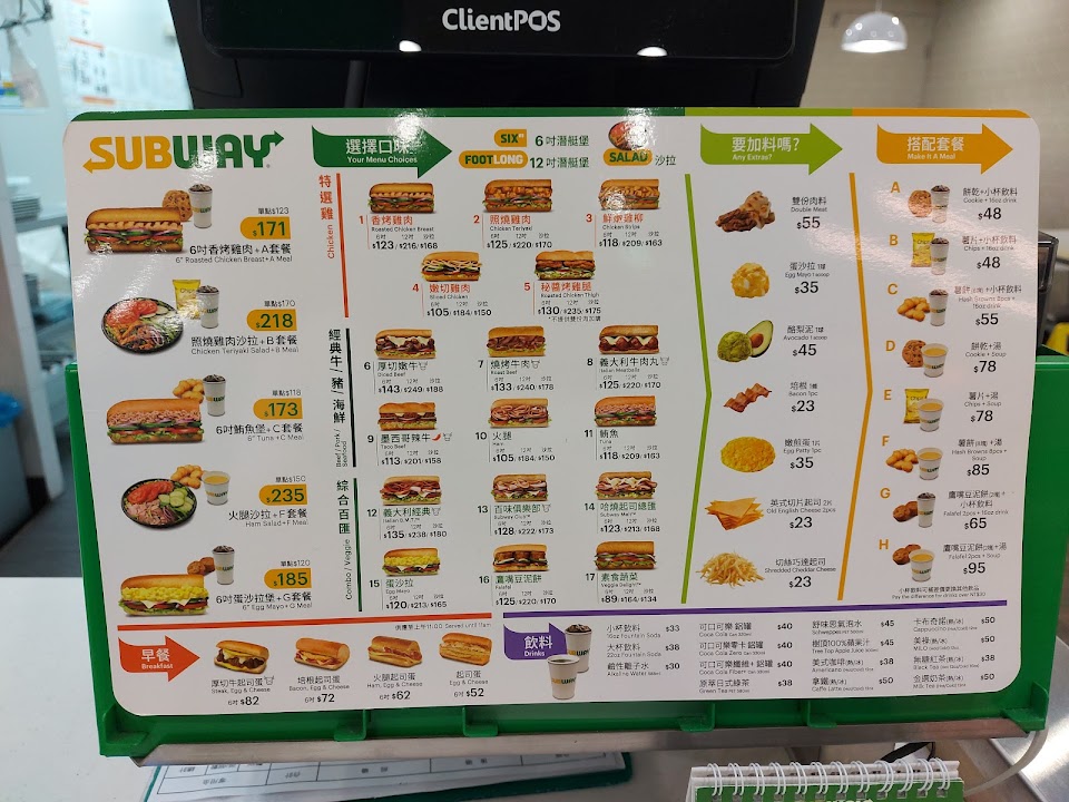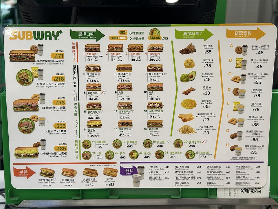 2024最新在地推薦餐廳的菜單_Subway 永康中華餐廳的菜單、圖片