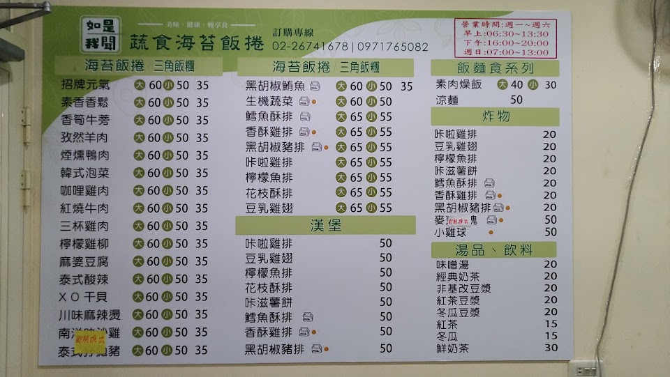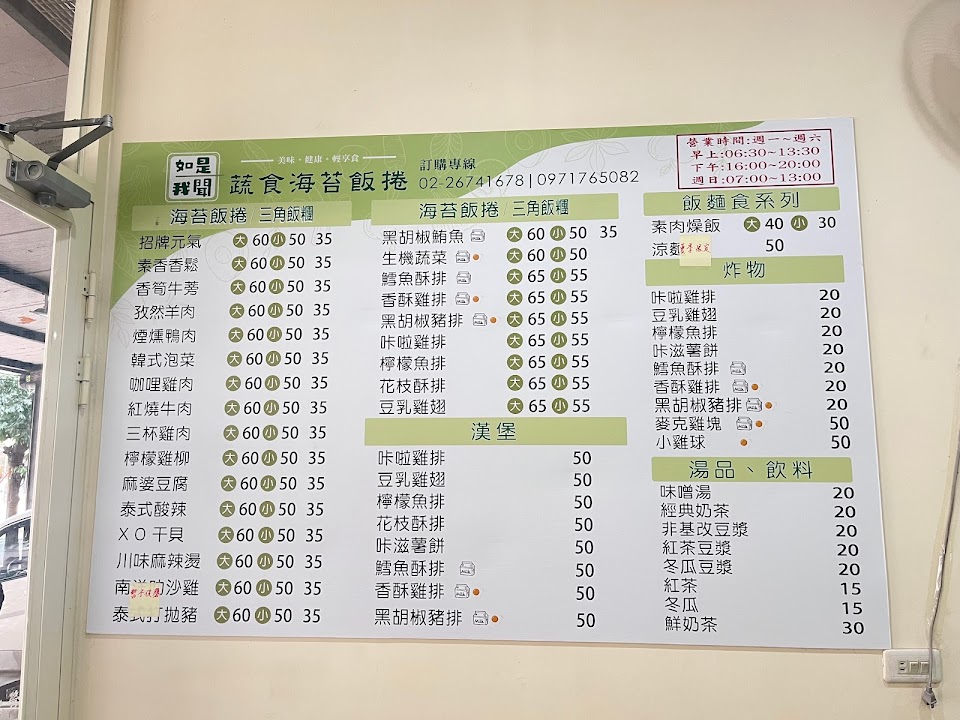 2024最新在地推薦餐廳的菜單_如是我聞蔬食海苔飯捲的菜單、圖片