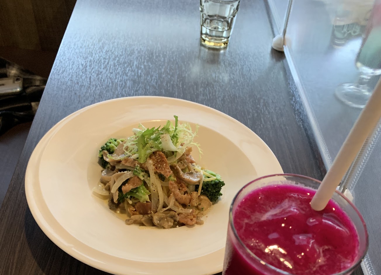 白醬口味如同評論一般,有點偏甜,所以到後面會有點膩,青醬的部分比較淡,但海鮮口感很新鮮,蛤蜊很大顆好吃。芝麻蕉奶(這個名字嗎?)很好喝,濃湯也不錯但好像有點小碗。希望未來可以有較清爽的清炒義大利麵,有停車場真的很棒。