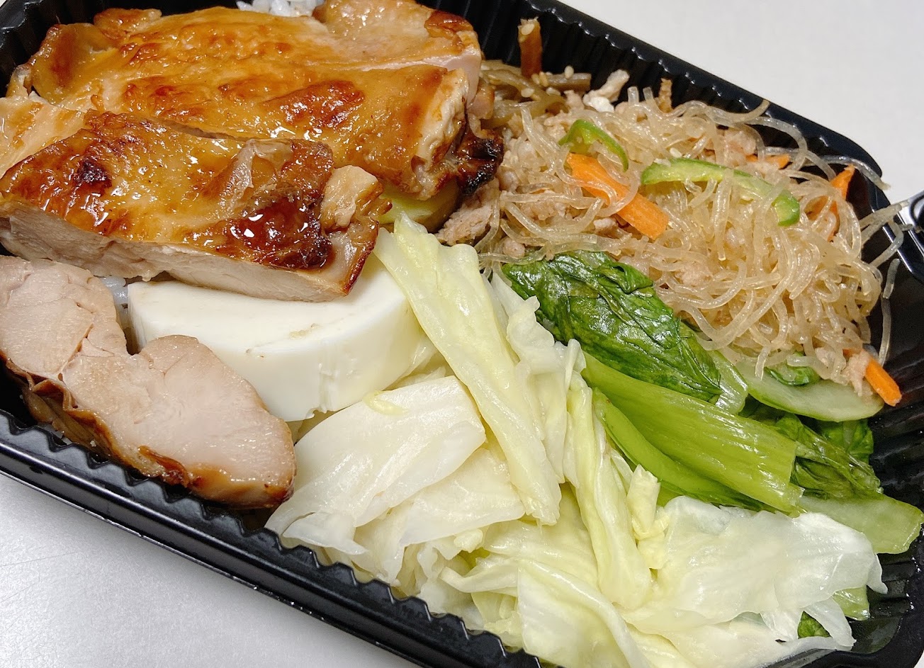 營養的便當,主菜配菜都有好滋味。豆腐排有點辣加上起司非常下飯,高麗菜跟青菜配菜份量也不少,且爽口不油膩。地瓜鬆軟香甜。