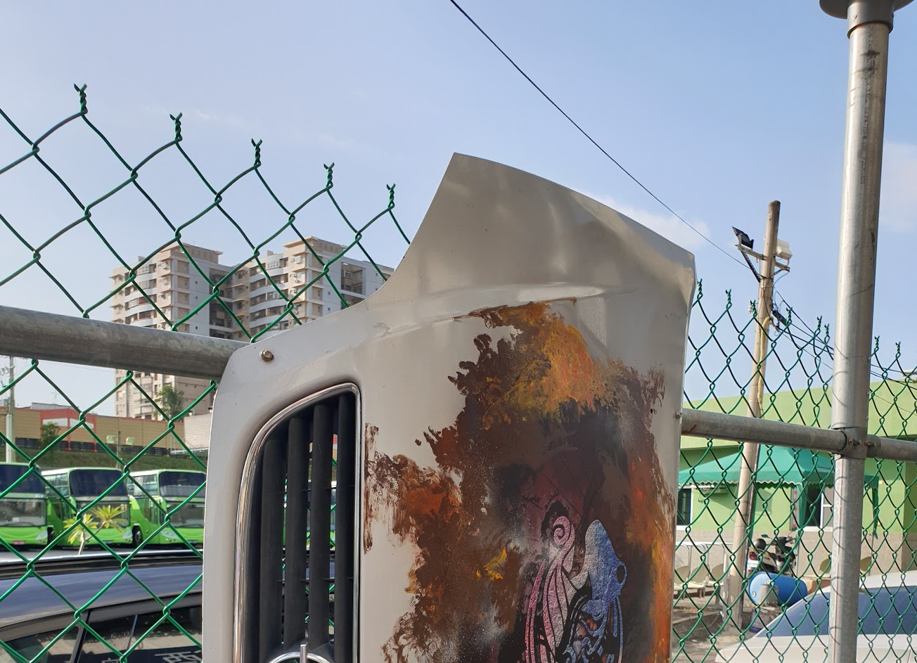 占地寬廣的倉庫空間,有由汽車零件製成的藝術品和家具,並設有異國美食餐廳。
