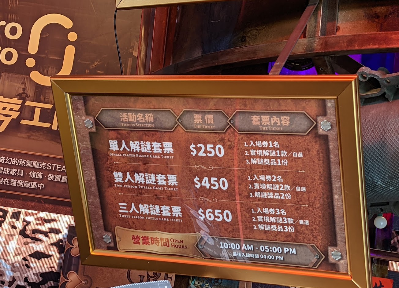 實境解謎根本就是騙人的!完全沒謎題!就只是按照指示找數字……真不知道多花比基本門票多150元是為了什麼?而且明明就有問有沒有時間限制,櫃檯還說沒有,只有DIY到5點,其他都到9點!結果我們在DIY做到五點出來全部都關了,冷氣也關了,是要解什麼?體驗很差!