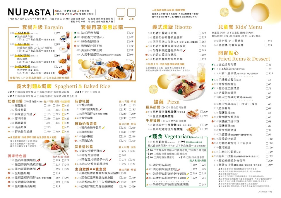 2024最新在地推薦餐廳的菜單_NU PASTA 台南永康中山南店的菜單、圖片