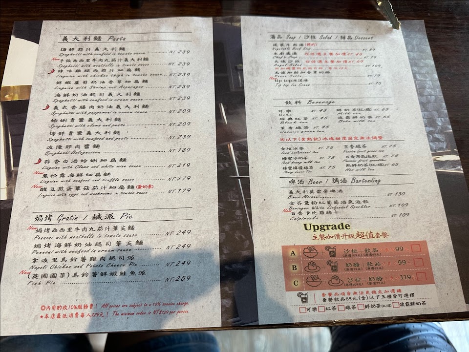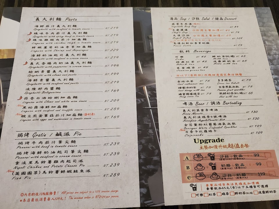 改成新座位配置後對個人用餐者極度不友善,內用剩兩個單桌,自然也不給四人桌用餐。最好吃的披薩也沒有了,唯一不變的是依然收著一成服務費。平心而論這裡的焗烤與套餐並不怎麼樣,別說相同的價位,甚至更低的價位在台南有更舒適的選擇。