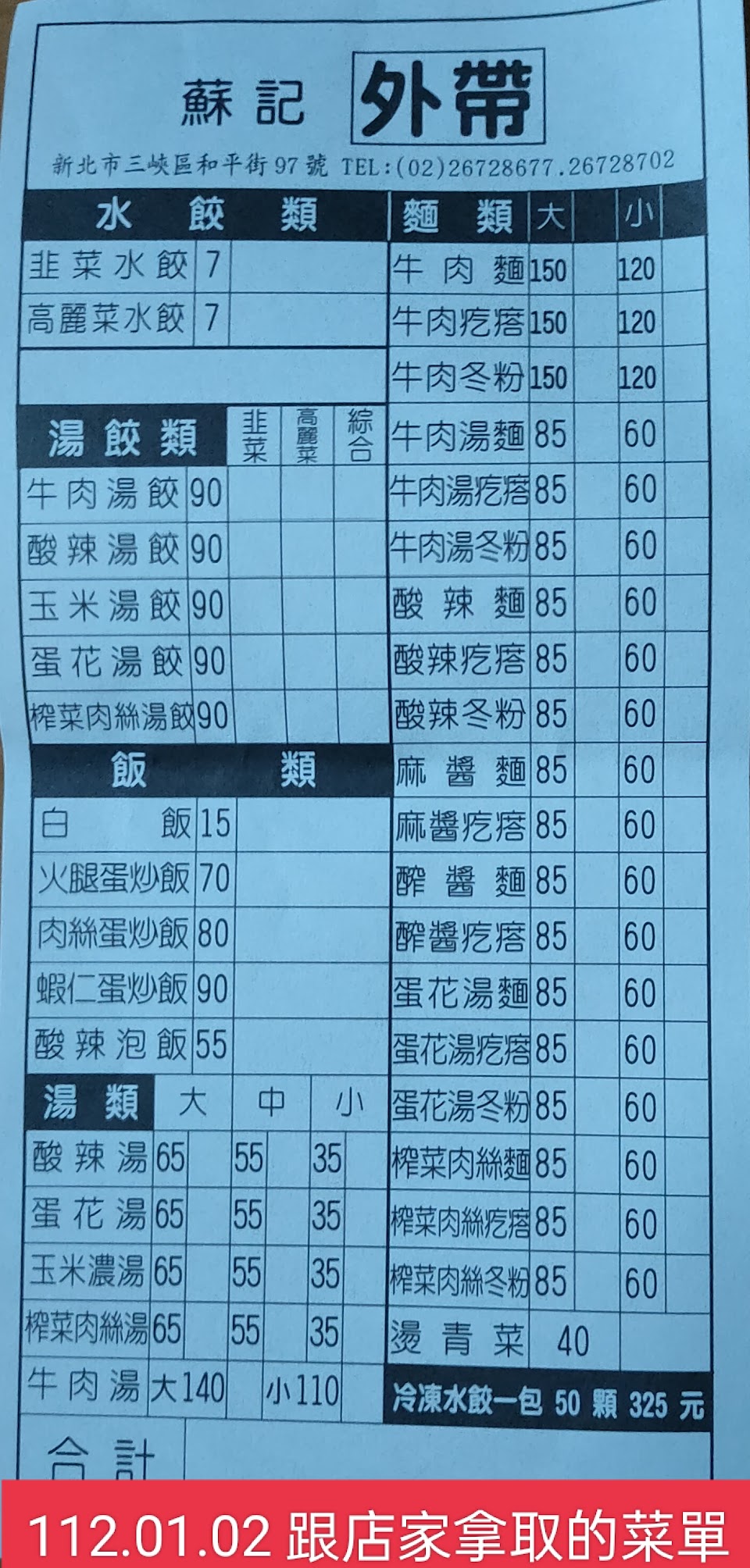 2024最新在地推薦餐廳的菜單_蘇記水餃的菜單、圖片