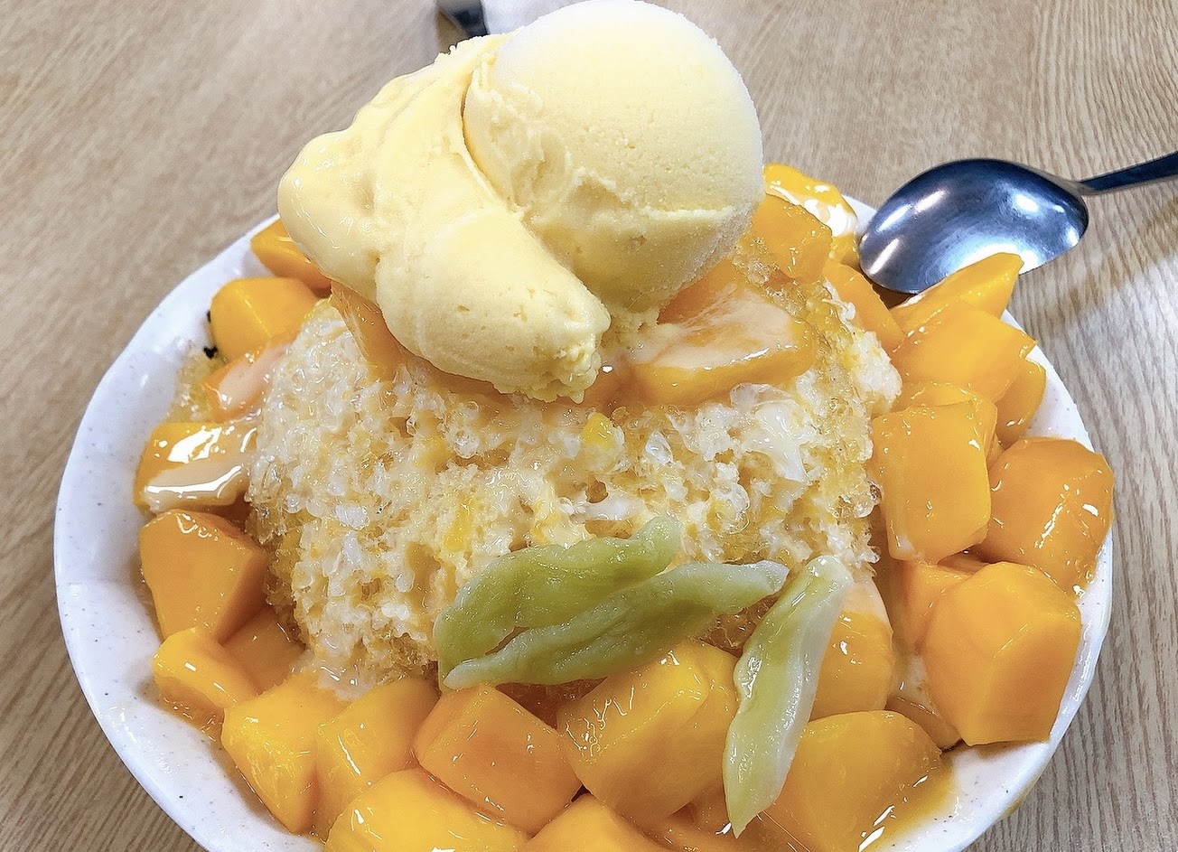 新鮮的芒果加上芒果醬熬煮制成的軟綿綿的冰上真的是好吃