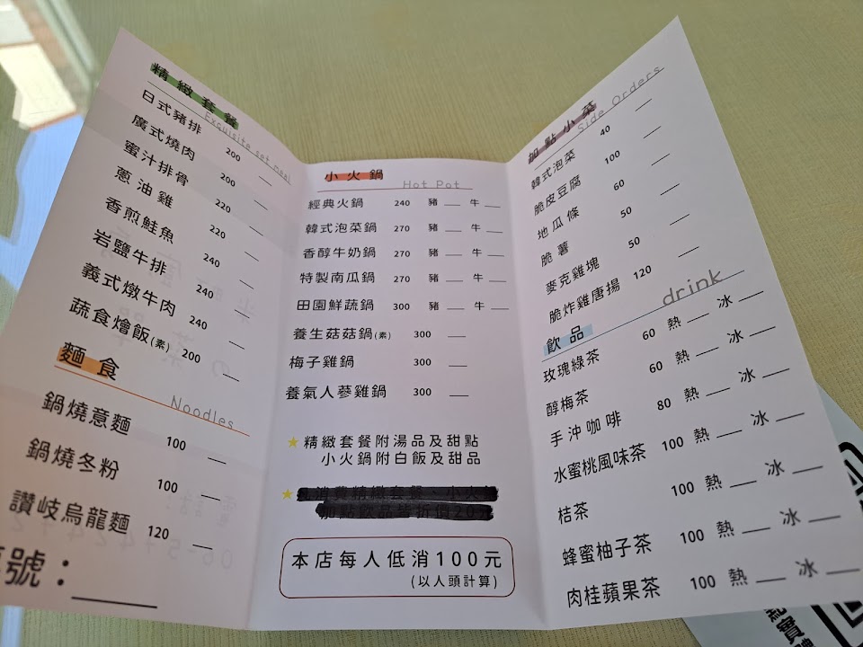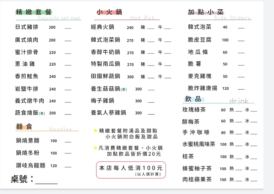 貴店菜單上明寫每人低消100元,