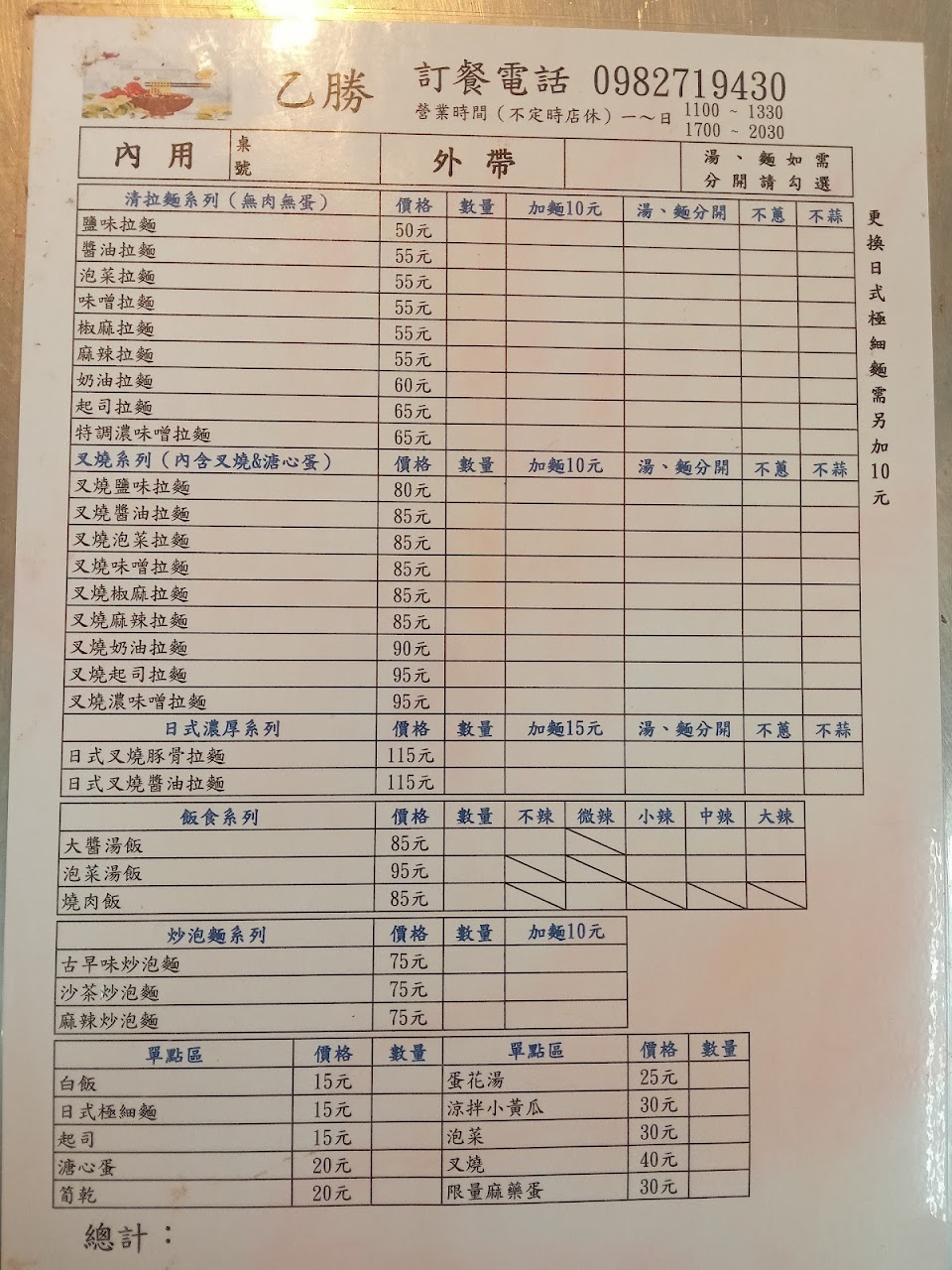 2024最新在地推薦餐廳的菜單_乙勝拉麵,湯飯的菜單、圖片