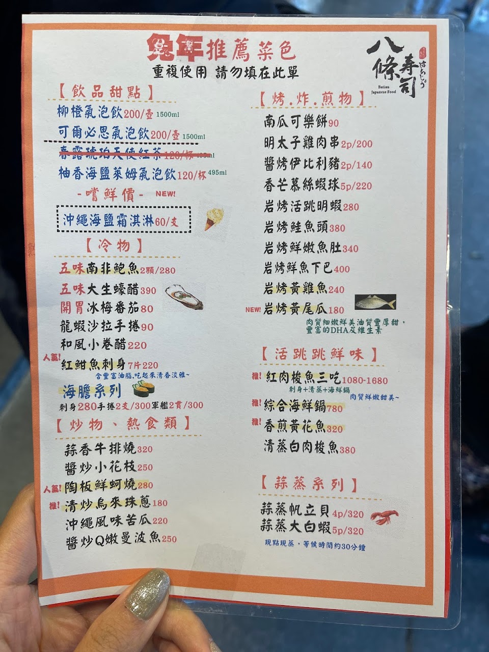 2024最新在地推薦餐廳的菜單_八條壽司三峽旗艦店的菜單、圖片