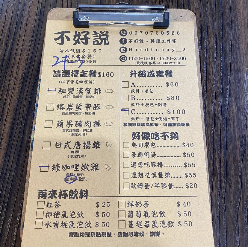 2024最新在地推薦餐廳的菜單_不好說。料理工作室的菜單、圖片