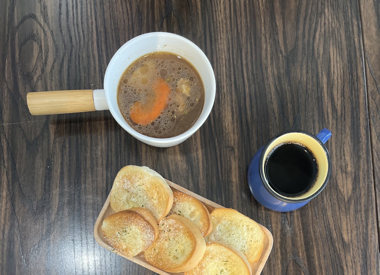 套餐的麵包跟飲料鮮奶茶還可以;當日的例湯是肉骨茶,肉是切成小塊狀的里肌肉,雖然口感有點柴但是滿多塊肉的,湯的口味也不錯;布丁普普。套餐方案整體而言覺得例湯超值,然後可以不用加到C套餐