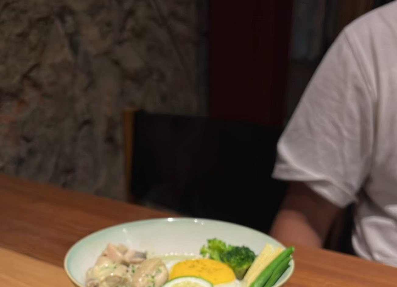 綠咖哩嫩雞的雞肉真的超嫩?辣度對我來說微辣,味道來說不會很濃郁只有淡淡的椰奶香氣,是不喜歡椰奶也能接受的,不過醬汁有點偏水,但是清爽型的,而且有半熟蛋增加濃郁口感很加分