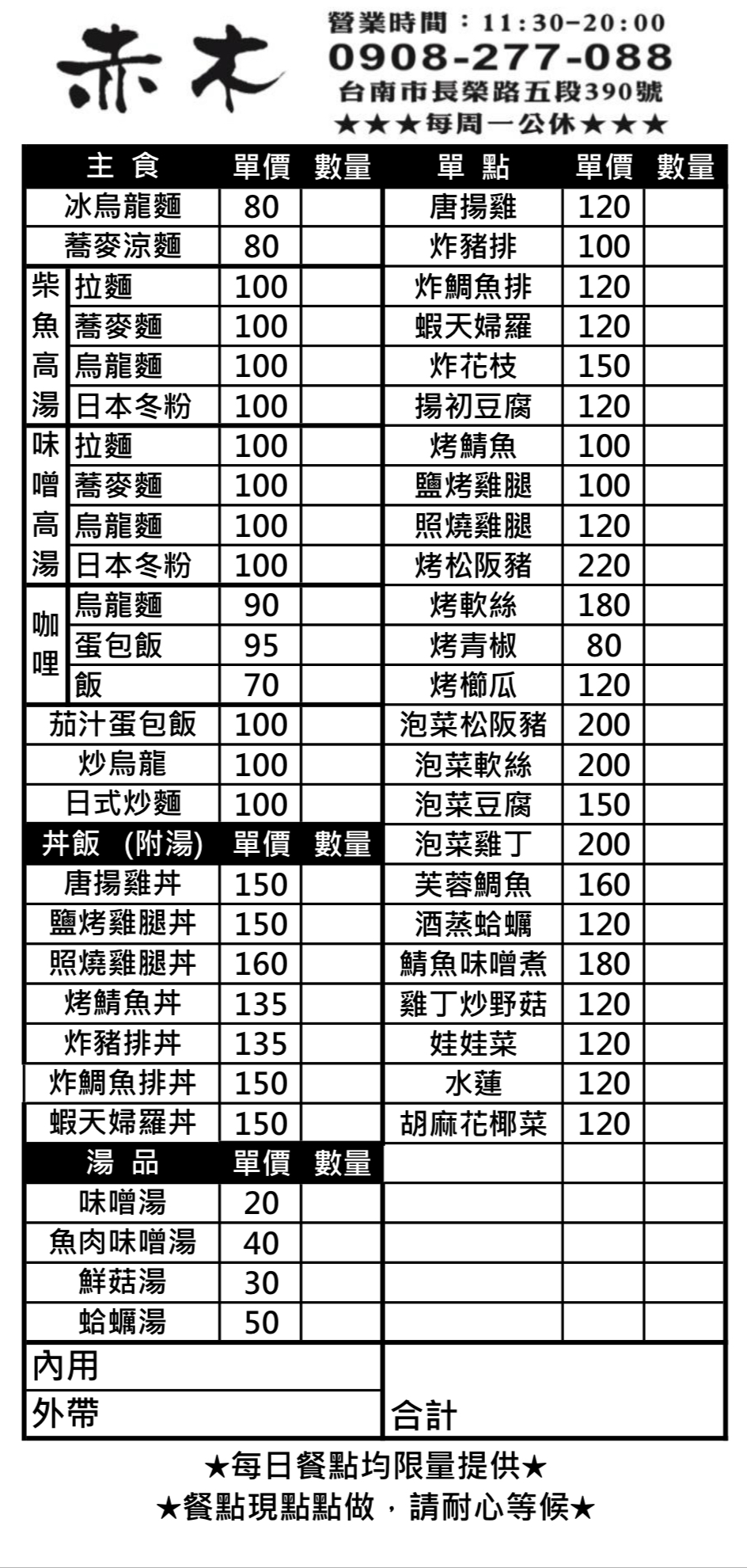 2024最新在地推薦餐廳的菜單_赤木食堂的菜單、圖片