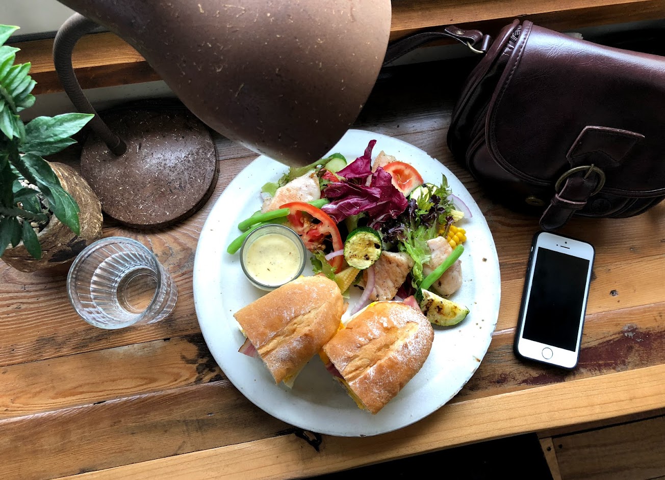 素食三明治相當清爽好吃,烤蔬菜也很juicy!!空間利用和綠化程度讓人驚艷,氣氛悠閒舒服又有趣。
