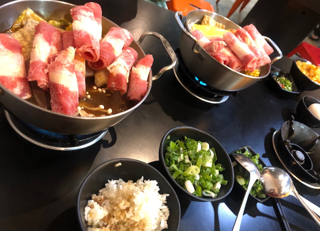 吃到飽的小火鍋。肉燥飯、咖哩飯很有誠意~