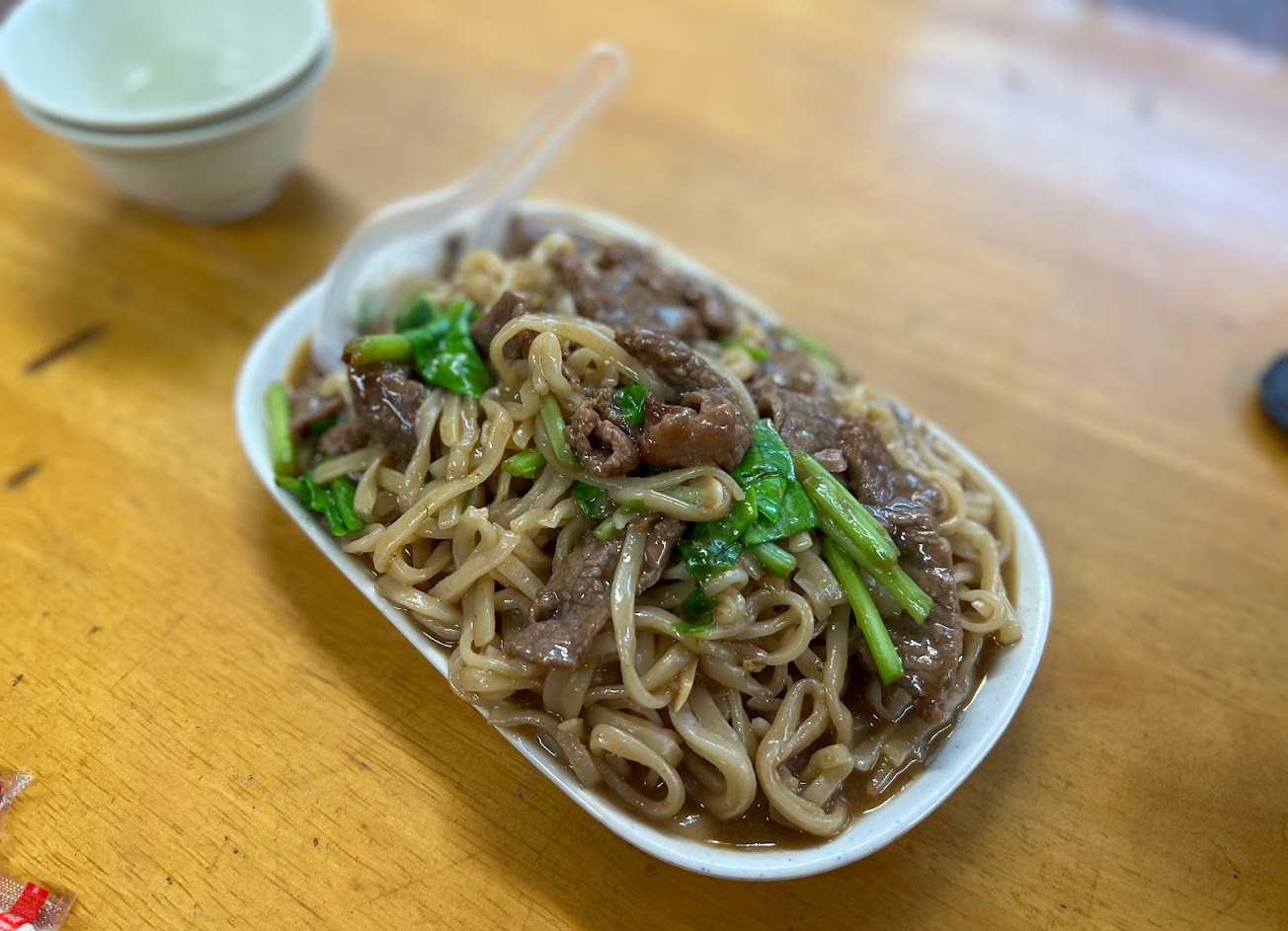 來到小北夜市附近不來吃點什麼有點說不過去,巳經是用餐時間沒什麼人潮,夜市營業的店家也不多,是不是景氣差有些都不營業了。但老李的生意還是不錯。點了一份牛肉炒麵、蛤仔湯。