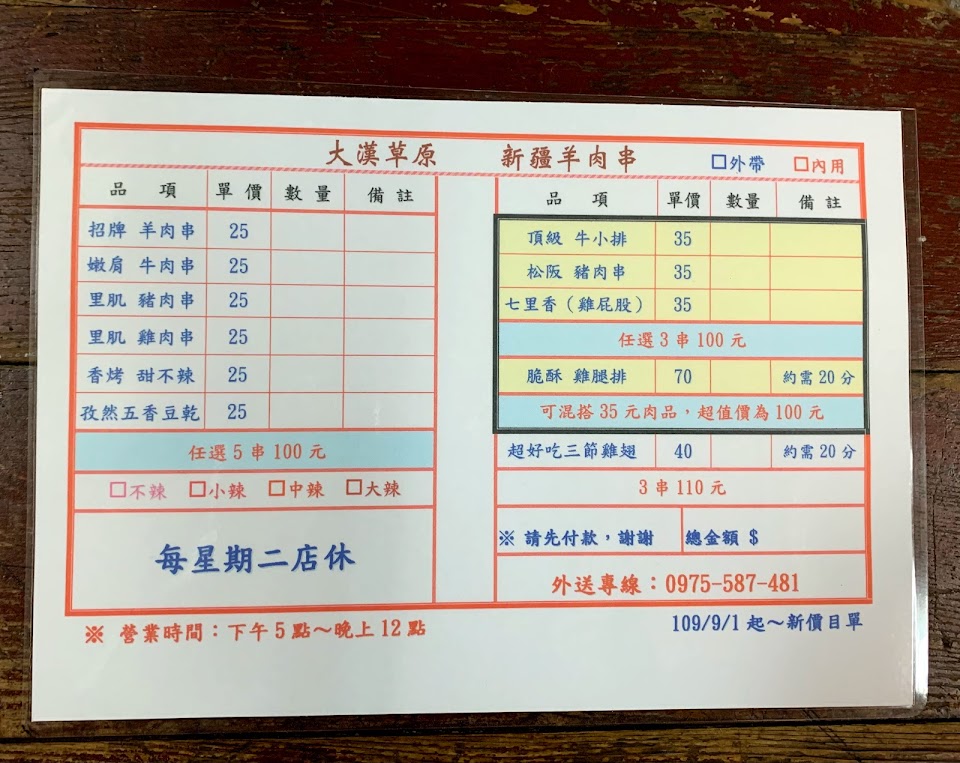 2024最新在地推薦餐廳的菜單_大漢草原 新疆羊肉串-台南公園店的菜單、圖片