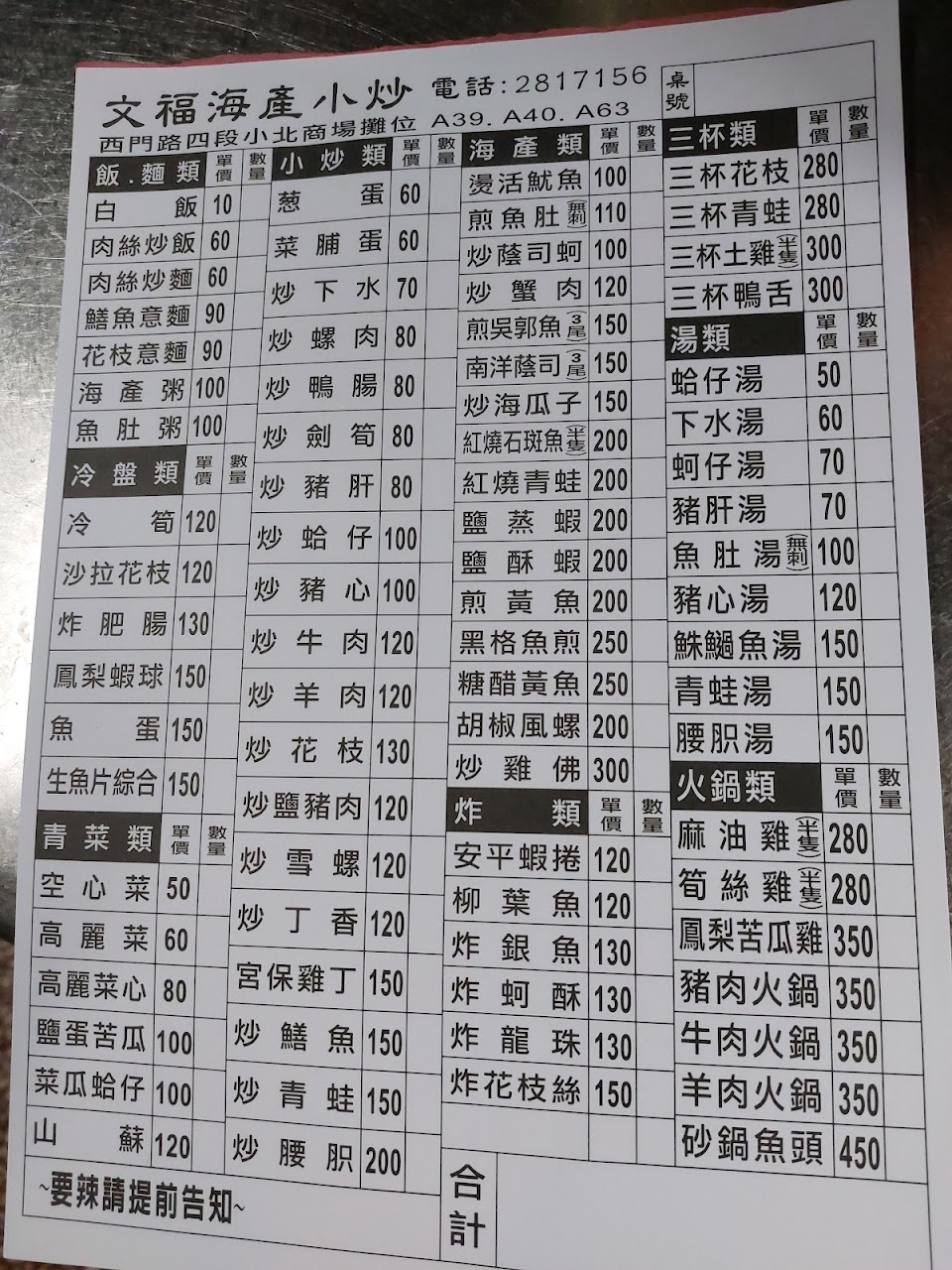 2024最新在地推薦餐廳的菜單_文福海產店的菜單、圖片
