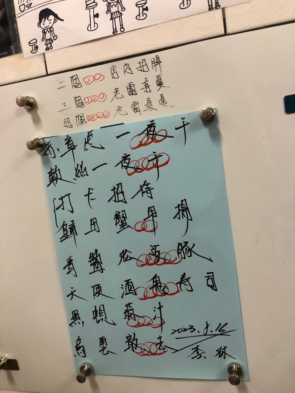 牆上貼滿了主廚親手寫的菜單