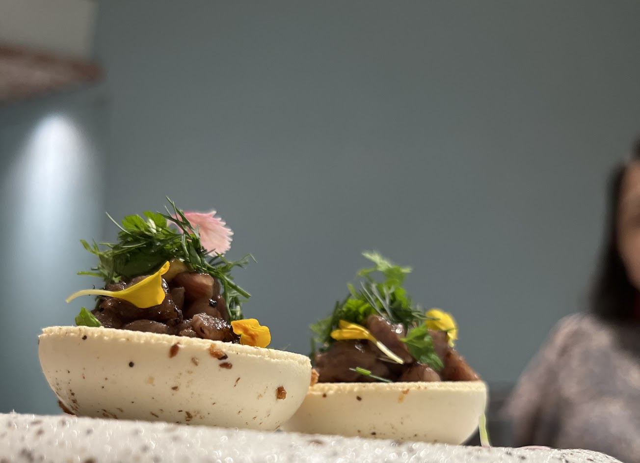 ?嘉義白紋鵝/碳烤茭白筍/鹹檸檬凍/山茼蒿醬汁/燈籠果: