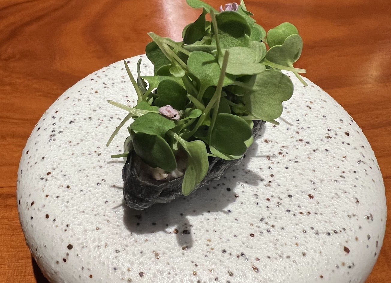毛豆部份有的熟有的沒熟,沒熟的吃起來苦澀,出餐前沒有試吃。瑪德蓮皮太厚太硬,地瓜粉皮很厚嚼不爛,鴨胸皮也是,紫蘇葉的比重過大,魚餅很腥,奶油味蓋不住,還一直滴油