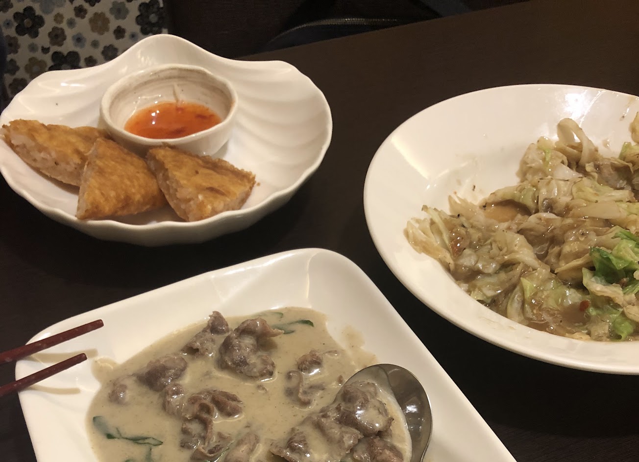 吃午餐,蝦醬時蔬和椰汁牛都好吃,店內空間很舒適噢,意外發現的好店~