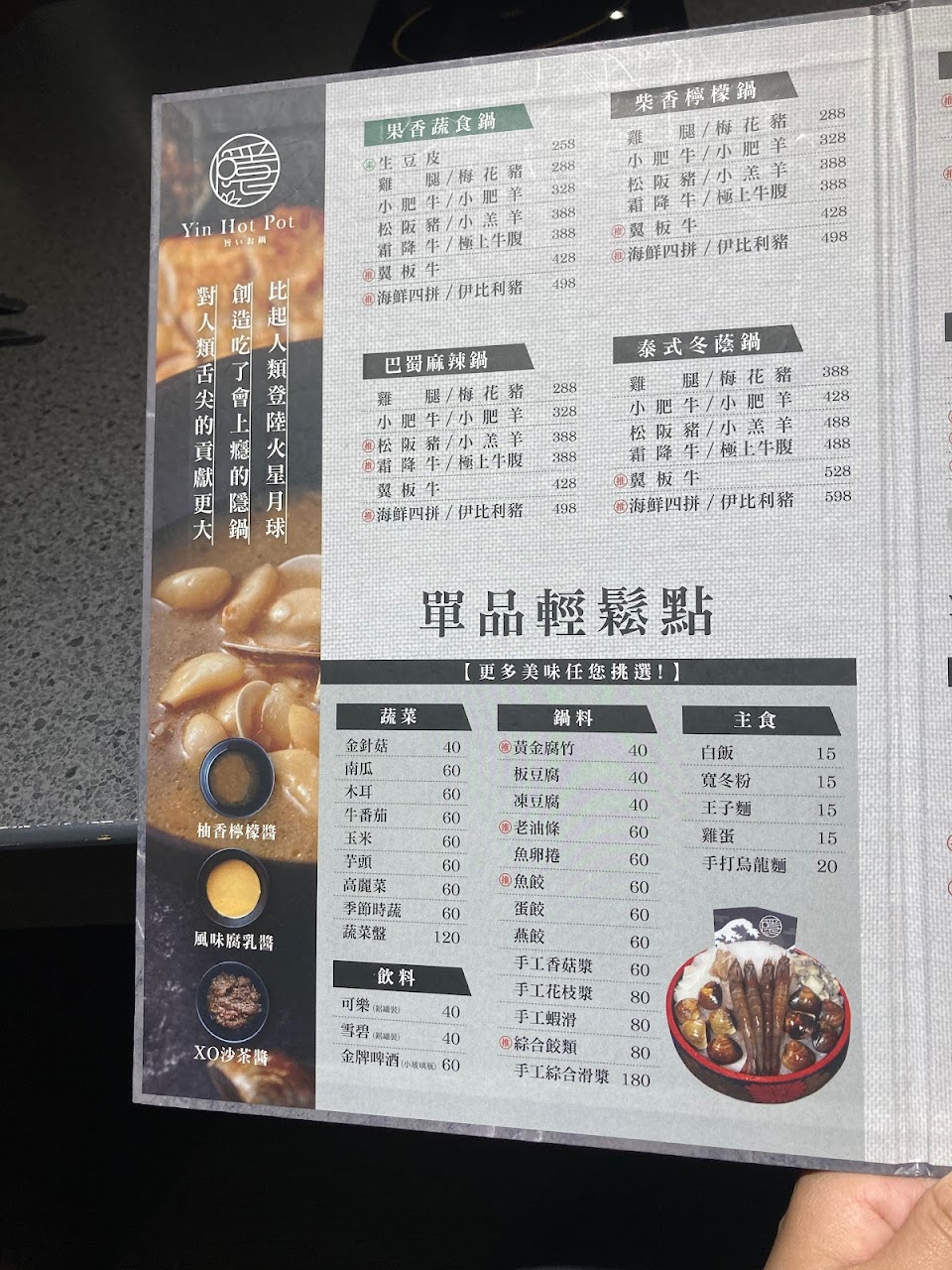 菜單部分,能夠提供的湯底非常多種價位落在258-488不等,便宜的湯底258起跳,貴一點的就358了..