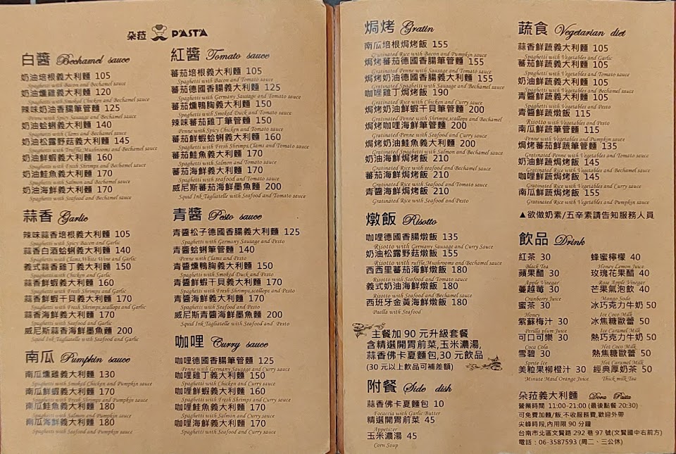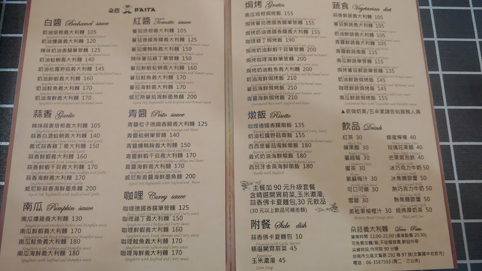 2024最新在地推薦餐廳的菜單_朵菈義大利麵的菜單、圖片