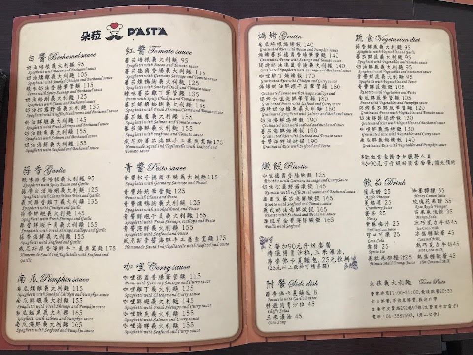 2024最新在地推薦餐廳的菜單_朵菈義大利麵的菜單、圖片