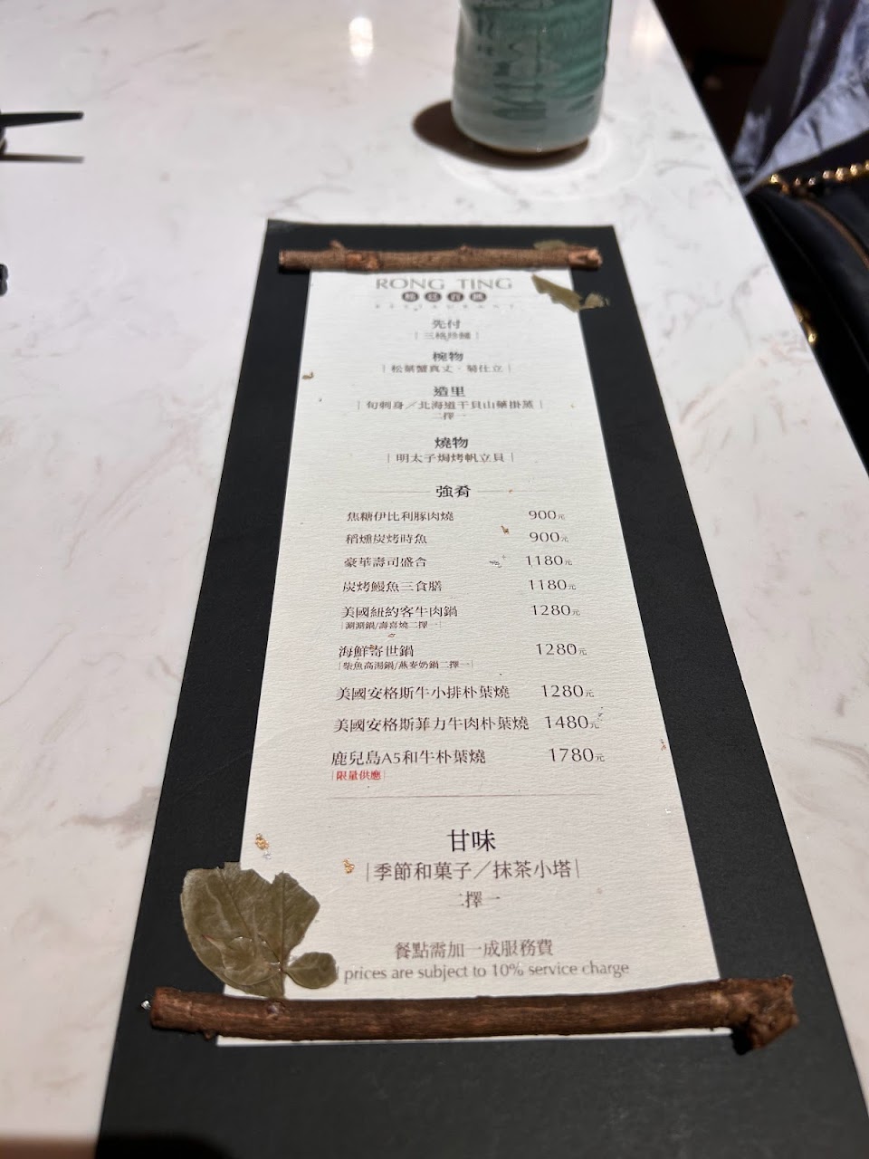頂級牛肉朴葉燒可圈可點,很嫩,葉子的香氣也會融入肉肉裡,這道主菜我以為有16oz