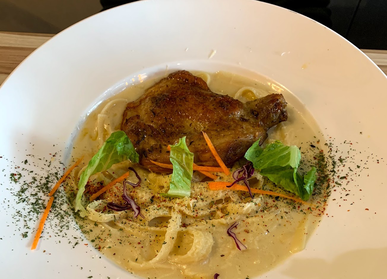 價格偏高,店裡氣氛很好,有高腳椅,松阪豬肉及牛肉很好吃,可惜量偏少,雞腿外皮也煎的脆脆的,很健康醬汁也不油膩