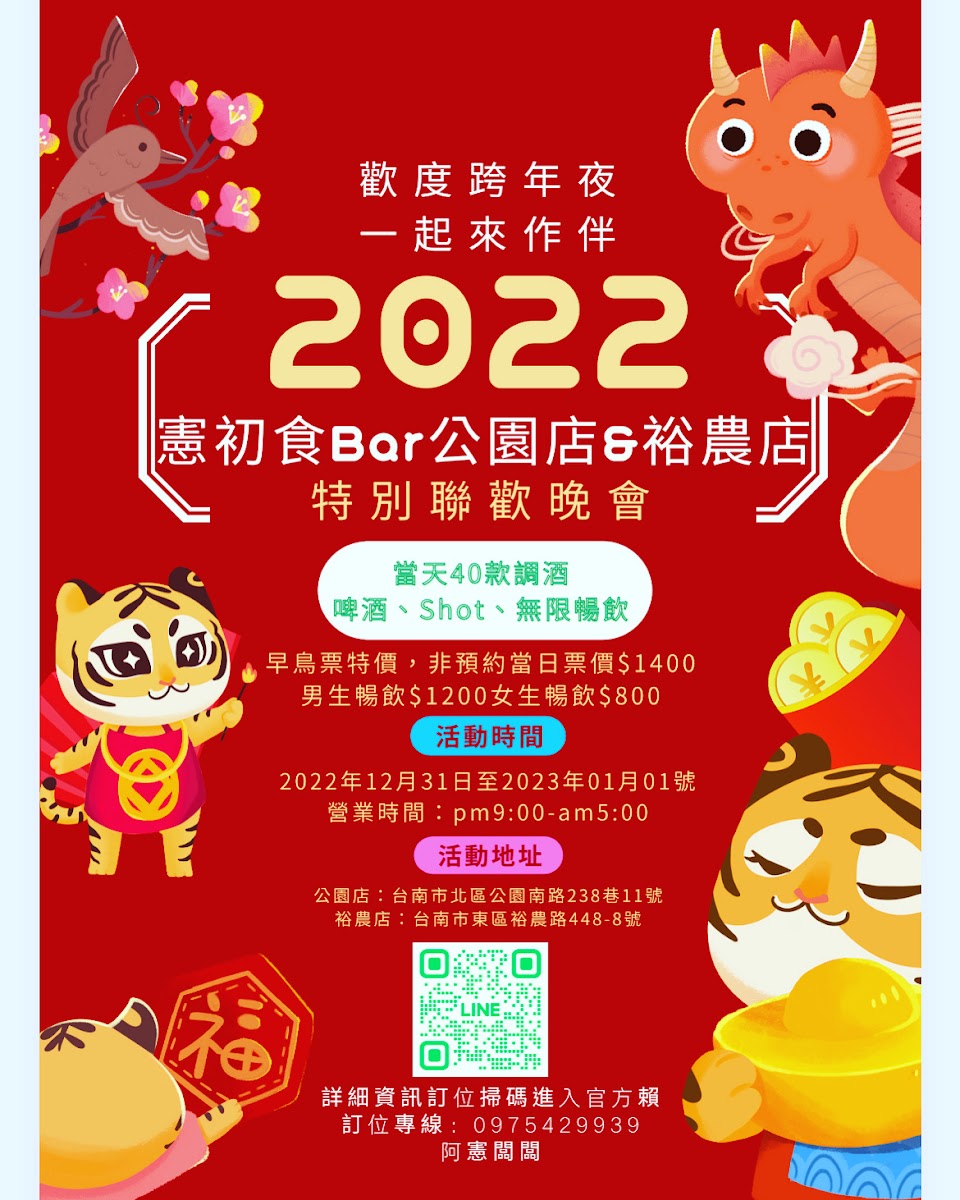 2024最新在地推薦餐廳的菜單_訂位先打電話 – 憲初食Bar |有暢飲及各種長島冰茶跟Shot買2送1喔~適合小酌聚會及喝到爽還有桌遊跟KTV|熱情的憲初食Bar歡迎你的菜單、圖片