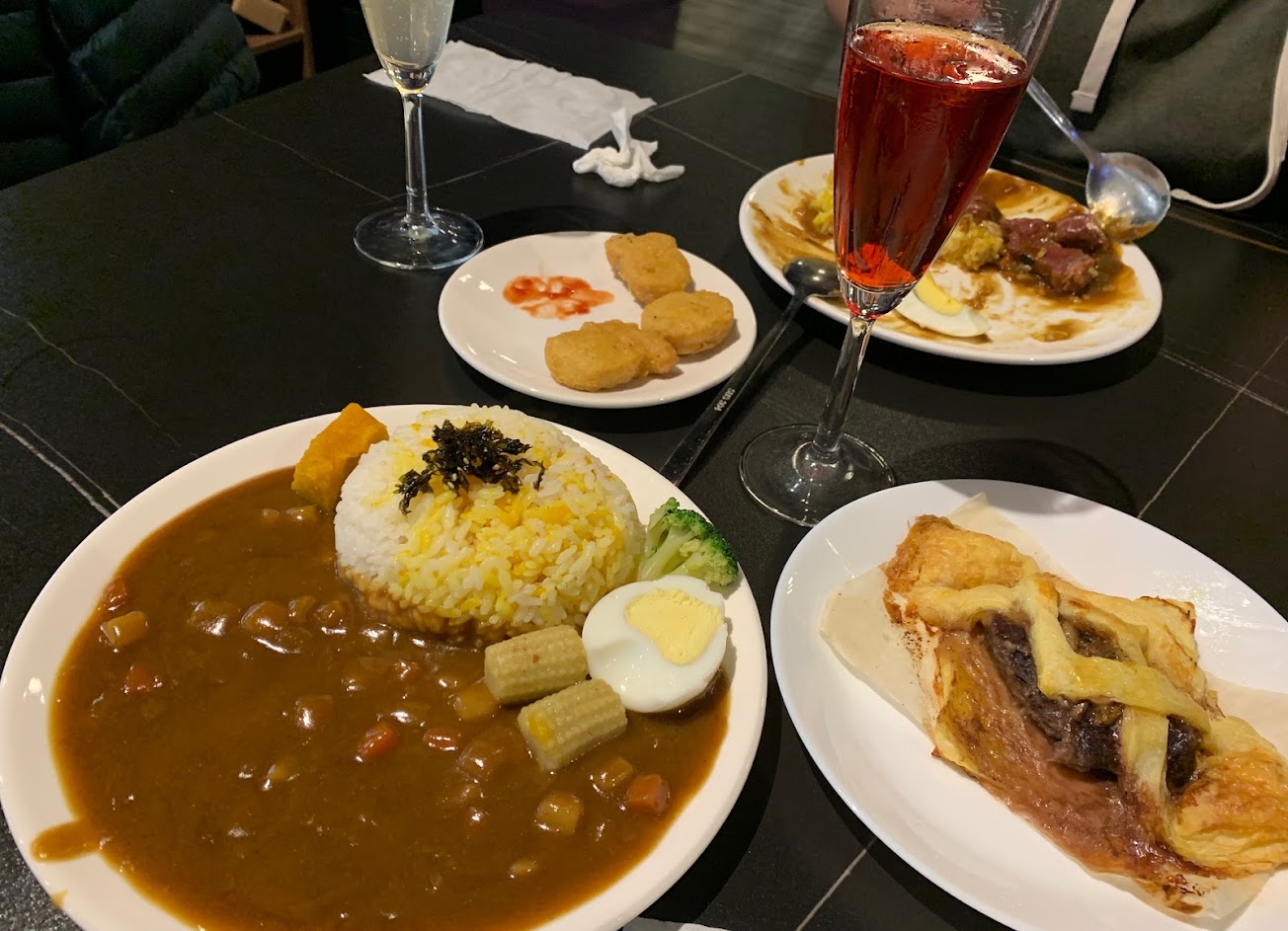 專賣咖喱飯的店,升級三客套餐900塊,白飯居然沒熟,老闆卻退我白飯的費用120塊,然而我們還要另外找餐廳填飽肚子,唯一值得的是魔術還不錯看