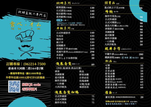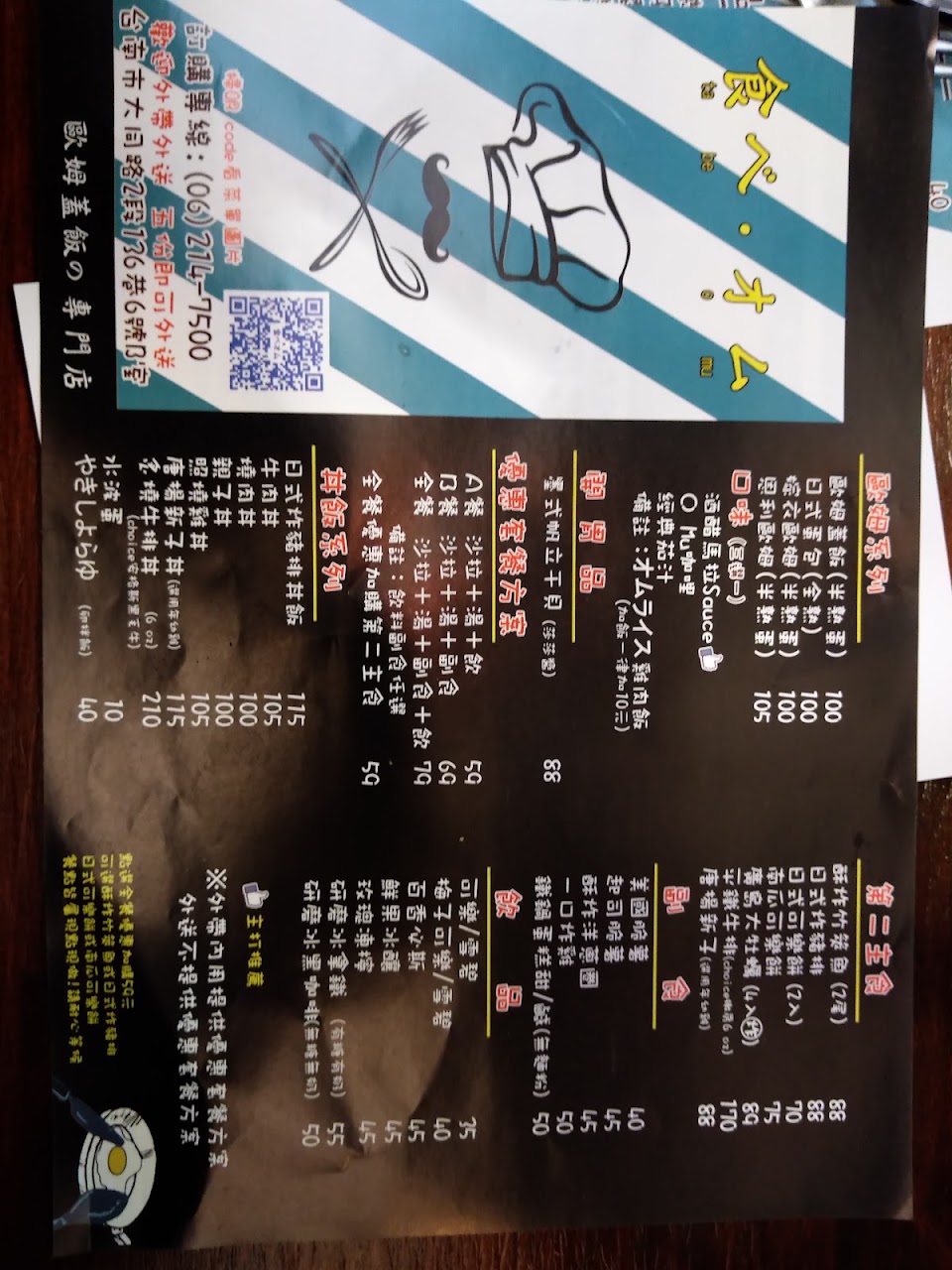 2024最新在地推薦餐廳的菜單_食べオム洋食歐姆専門店-台南 人氣必吃美食 平價日式蛋包飯 銅板排隊料理 聚會聚餐首選推薦的菜單、圖片
