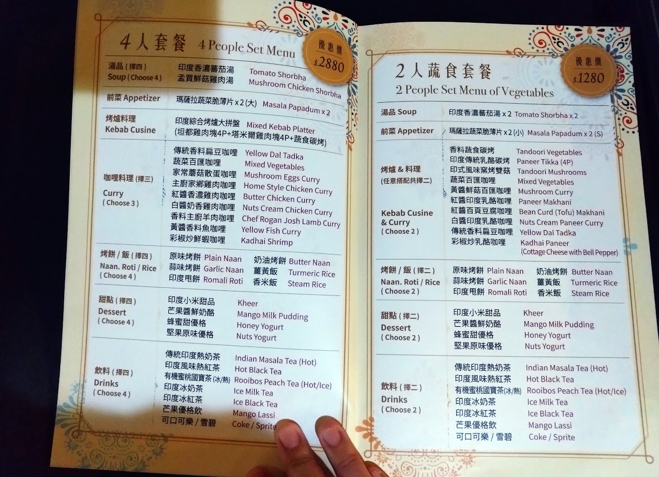 點了四人套餐 餐廳的各種咖哩採用相當多種香料製作, 醬汁濃郁並且充滿多種香料的香氣又十足辛辣,各種咖哩都有其獨特風味,肉類都燉得很嫩又入味,說真的烤餅也不錯吃。 後來才知道是五星級的印度主廚掌廚….
