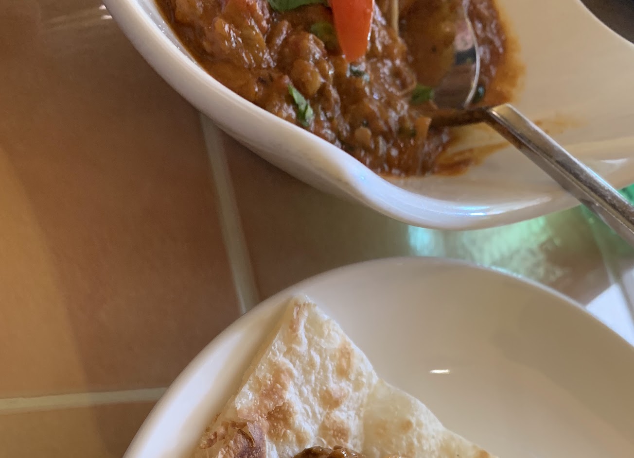 烤餅非常好吃 建議兩個人可以點一份咖哩 烤餅多點幾個配著吃就好 (三個烤餅一份咖哩 一個前菜)飽到不行 很喜歡印度香料咖哩 全麥千層烤餅奶油口味 好吃